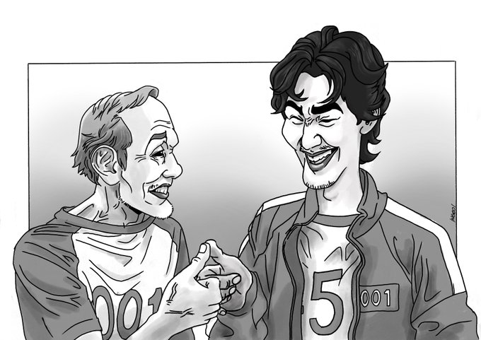 Day 07 - Gganbu At the start of the 4th game, the old man and Gi-Hun teamed up and promise that they'll be Gganbu and beat up the other teams with their marble skills. Digitally inked this using Procreate. #squidgames #squidgamesfanart #gganbu #artph #penandink #inktober2021