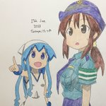 イカ娘 / Squid Girl and Ms. Furukawa from official artwork Squid Girl is showing Ms. Furukawa the way back to the police station For #おまわりさんの日 / Police Officers Day #イカ娘 #SquidGirl #Illustration #Drawing #イラスト