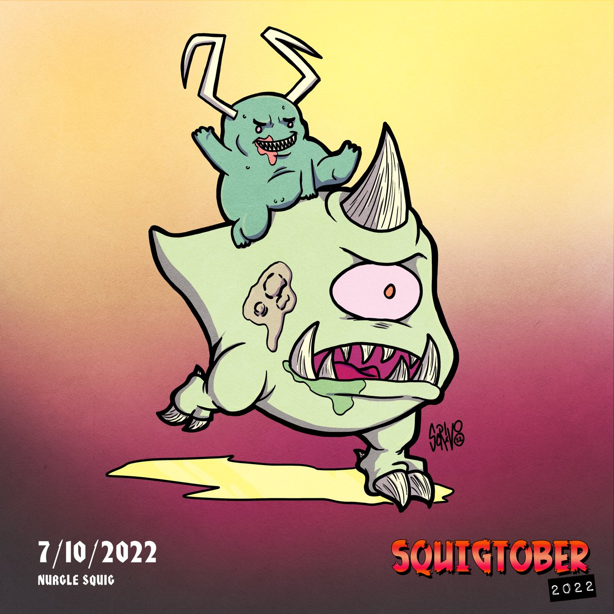 #Day7 of #squigtober2022. Nurgle is the most fun God to draw, purely because Nurglings are the best! #inktober #orktober #squigtober #warhammercommunity