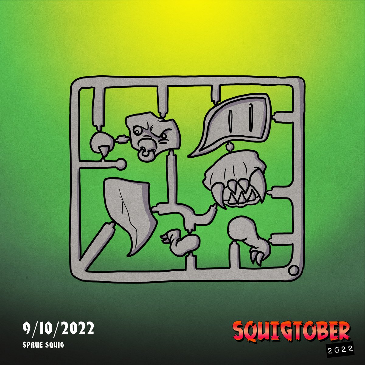 A late one! #Day9 of #Squigtober2022. I pencilled this one out gone midnight last week and it still made me giggle, so you get the full grey plastic of it! #40k #inktober #squigtober #orktober