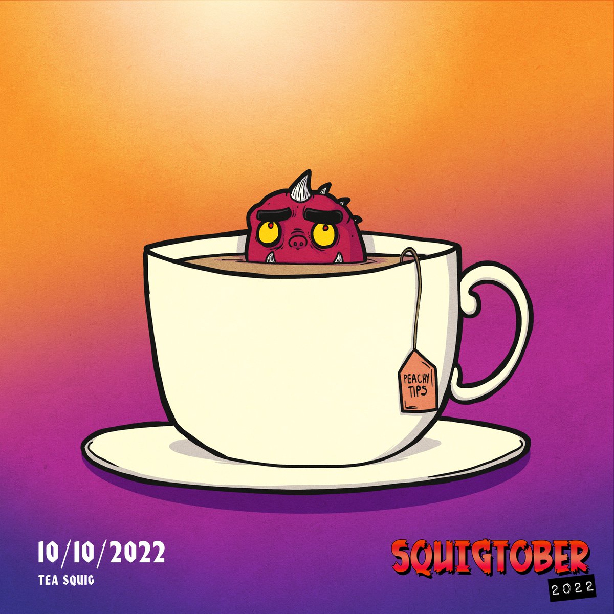 #Day10 of #Squigtober2022. To celebrate @_Peachy_Tips_ 's new gig at The Painting Phase I did a Tea Squig. Fun fact, it's not the first time I've designed a tea related thing, I did @spruesandbrews logo a few years back! #orktober #squigtober #inktober