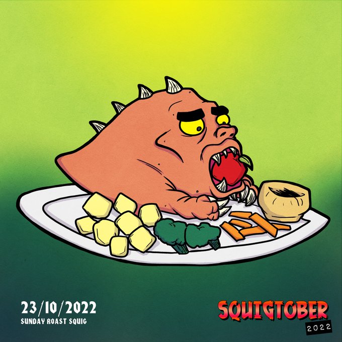 #day23 of #squigtober2022. One classic over in the UK is a Sunday Roast, if "Meats back on the Menu..." for Orcs, it's not much of a stretch to imagine they do Roast Dinners! Back tomorrow for another Bundle of Joy! #inktober #orktober #squigtober