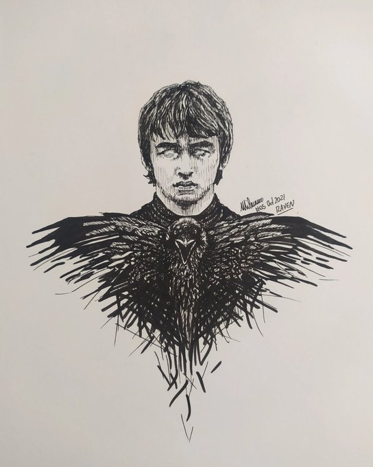 #inktober2021day5 #raven ¿Qué #serie/#película es? Solución: #Cuervo = Cuervo de tres ojos = Bran #Stark = Game of Thrones. #inktober2021raven #inktober2021 #inktober #ink #inkdrawing #inkart #tinta #gameofthrones #juegodetronos #branstark #cuervo #portrait #fanart
