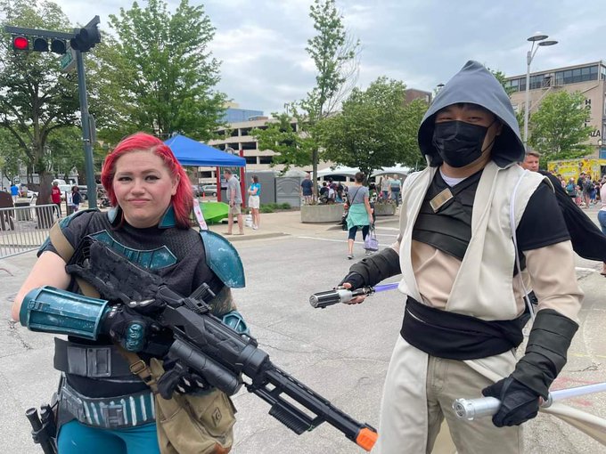 Got into a duel with @zangites last weekend at Joliet. Groovy Louie better call it disc the middle or I'll get @SamWitwer to help me out...... Pic by @zangites #cosplay #cosplayers #cosplaylife #COSPLAYMODE #StarWars #samurai #StarWarsDay #joliet #starkiller