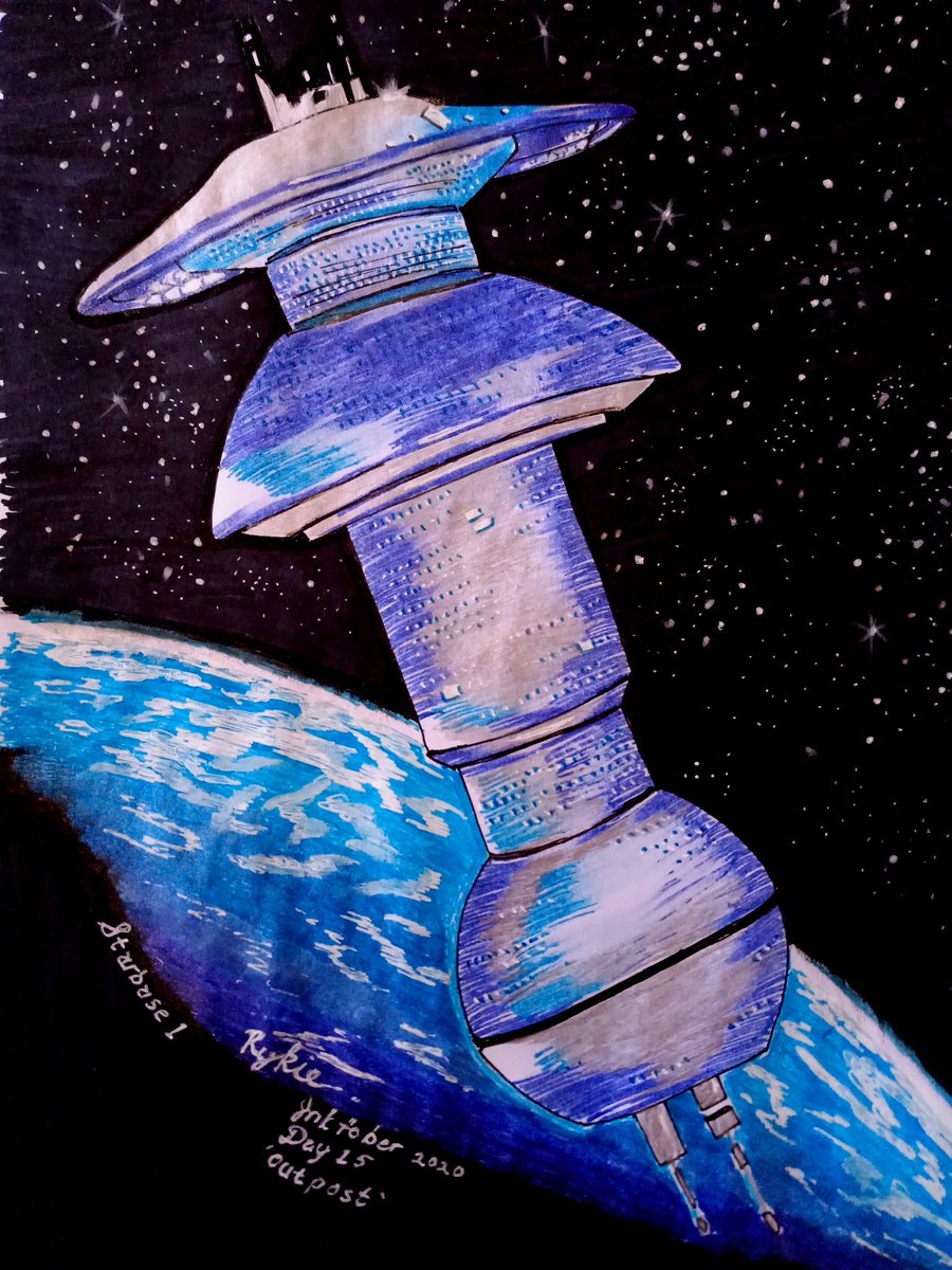 Poor blue gel pen had to sacrifice his life for this! #inktober2020 #inktoberday15 #day15 #outpost #starbase #startrek #inksketch #drawing #star #trekkie #startrekfan #galaxy #gelink #gelpen #startrekfanart #fanart #frontier #federation #unitedfederationofplanets #starfleet