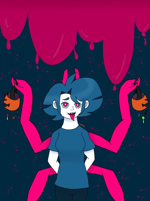 Next up for Funkin' Halloween-- Huh? What's Rebecca doing here, and how'd she get so much candy? Maybe because of her super convincing Demon costume! ...What do you mean it's not a costume?! #starvingartistfnf #FNF #fnffanart
