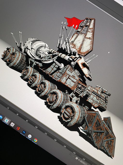 WIP update. Slowly getting this beast textured. Old school UV unwrapping because I like pain 😅 Hopefully get it completely this weekend. #StarWarsVisions #StarWarsFanArt