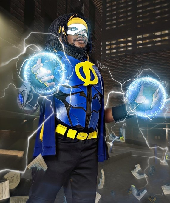 "Heroes come in every color, my friend." - Anansi, Static Shock My 1st suit pattern design! S/O @DMcDuffiePage for all he did for my childhood & the culture! 📸: @shotbyryandee 📍: @blerdconDC #DCComics #MilestoneMedia #StaticShock #BlackCosplayerHere #JuicemanCosplay