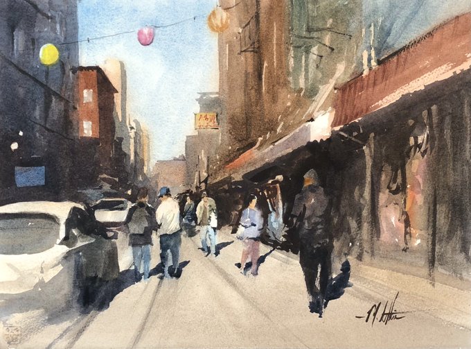 I loved the light, the movement and the atmosphere of this scene from #chinatownnyc Painted on Saunders Waterford 140lb Cold Press Paper #watercolor #stcmill @StCuthbertsMill