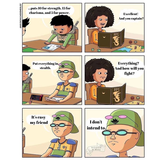 I love this guy! 👏🏼 He knows all about strategy. 😂😂😂 #ttrpg #TTRPGRising #TTRPGs #ttrpgfamily #dnd #DnDcharacter #dndart #dnd5e #dndmeme #dndmemes #dnddice #stealth #dice #dungeonmaster #dungeonsanddragons