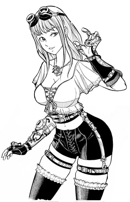 最近は忙しくてご無沙汰でしたね… アナログお絵描きスチームパンクちゃんやっと完成。 スチームパンクちゃん。 #白黒イラスト #steampunk_girl #manga #mangaart #スチームパンク #スチームパンクイラスト #steampunk #スチパン #スチパンイラスト #アナログイラスト