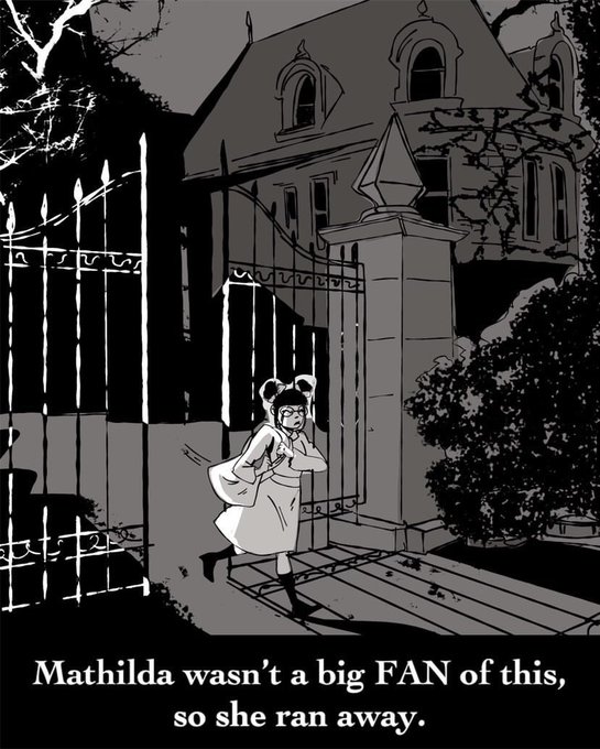“Mathilda wasn’t a big fan of this, so she ran away.” #inktober #inktober21 #inktober2021 #steampunk #steampunkstyle #steampunkart #artcollaboration #art #comics #sketches #doodle #digitalinking #bw #blackandwhite #comictober #comicsartist #mathilda #frenchinktober #fan