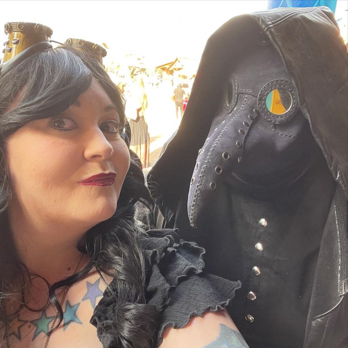 Back to the RenFaire after a long hiatus. Hopefully get another trip before end of season. Costumes by @carynjade_crafting #azrenfaire #arizonarenaissancefestival #steampunk #steampunkstyle #cosplay #azcosplay #plussizecosplay #jousting #leatherwork #customsewing #plaguedoctor