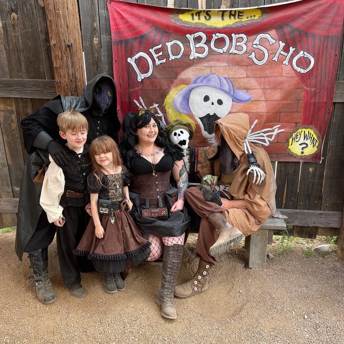 More from this years trip to the RenFaire. Got to see #dedbob and my hero Sir Max, finally. costumes by @carynjade_crafting #azrenfaire #arizonarenaissancefestival #steampunk #steampunkstyle #cosplay #azcosplay #plussizecosplay #jousting #leatherwork #customsewing #plaguedoctor