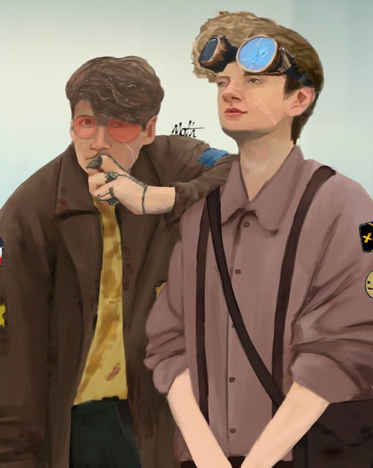 Wilbur and Tommy but if they were from my au. This took a really long time. //faint blood stains . #steamrolledau #wilbursootfanart #tommyinnitfanart #crimeboysfanart