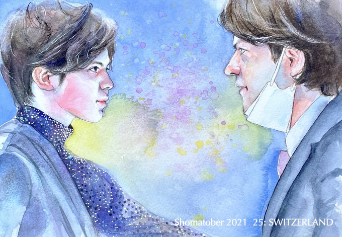25 : SWITZERLAND ⠀ ⠀ スイス出身の、大切な大切な人🇨🇭⠀⠀⠀⠀⠀ ⠀ #shomauno #宇野昌磨 #stephanelambiel #ステファンランビエール #weloveyoushoma #goodluckshoma #watercolor #水彩 ⠀ #shomatober2021 ⠀ ⠀