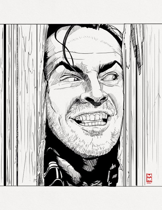 #inktober day 22 #open did an #illustration of Jack Torrance (Jack Nicholson) making his own openings. From #theshining #horror #stevenking #stanleykubrick #comicart #inktober2021 #inktoberchallenge @inktober @mrjakeparker