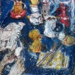 Having a go at this weeks #stillherestilllife over on Instagram #waxcrayons #painting #cutting #collage #pattern #ArtistOnTwitter #thedailysketch