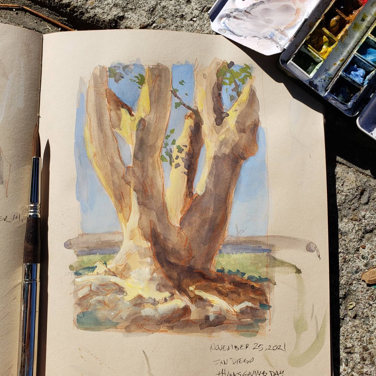 Sketching in the Embarcadero Park with @wendy_grieb today. #urbansketch #watercolor #stillmanandbirn