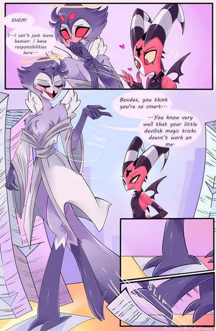 Angel Stolas x Blitz Incubus AU part 1/??👼😈🖤 It's my first time posting a comic, I hope you like it to continue doing more parts🥰🥰 (I apologize in advance if I write something incorrectly, my English is not that good😆) #HelluvaBoss #stolitz #Stolas #stolasxblitzo