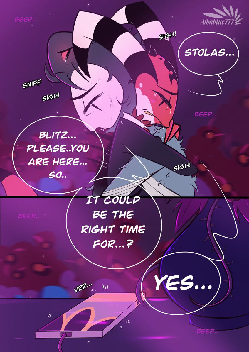 “Face him” (15/17 - read from L to R) the latest two pages will be posted by this week, you know..Stolitz Week is coming to town 🦉❤️🦎 #HelluvaBoss #HelluvaBossFanart #Stolitz #Stolas #Blitz #Blitzo #stolasxblitzo #comic #fanart twitter.com/albablue7771/s…