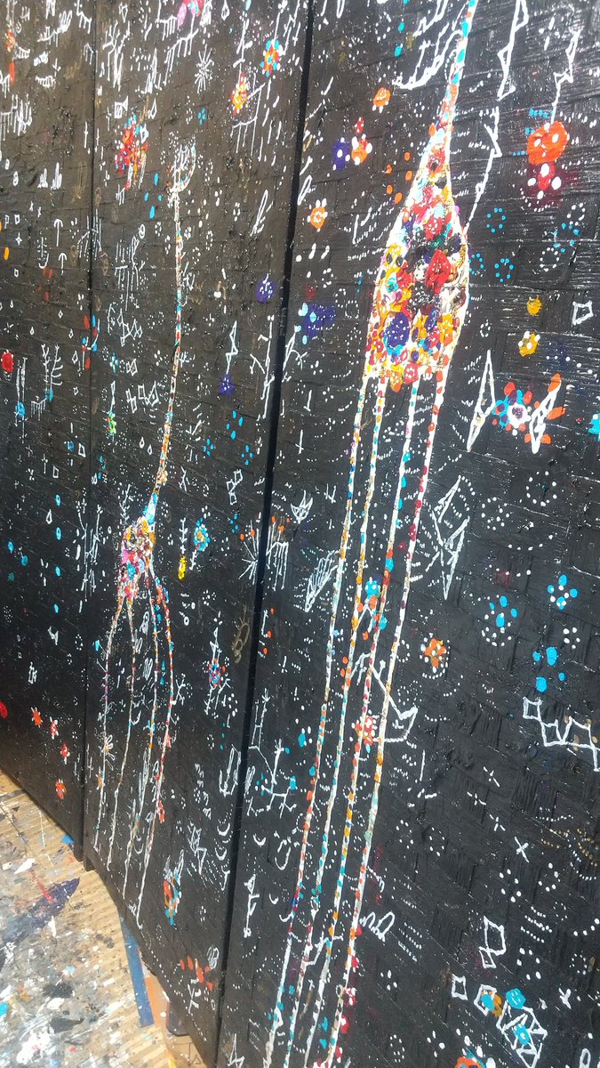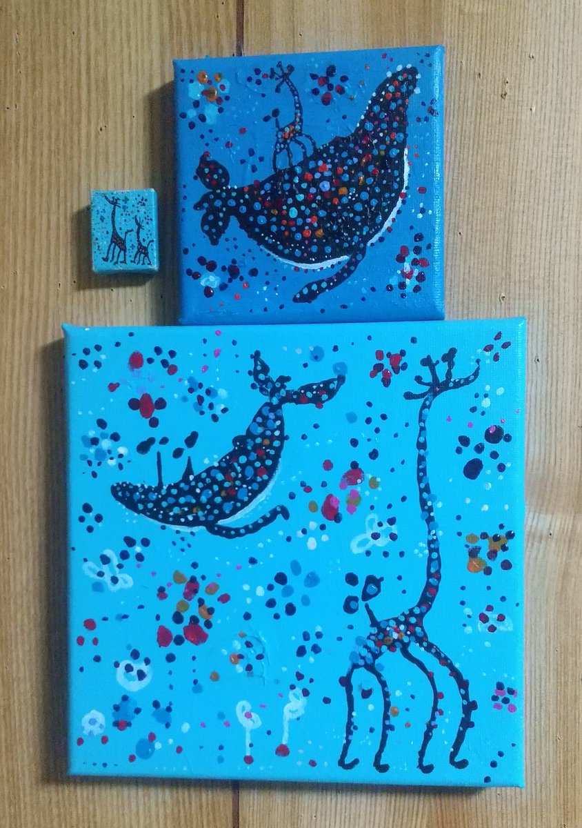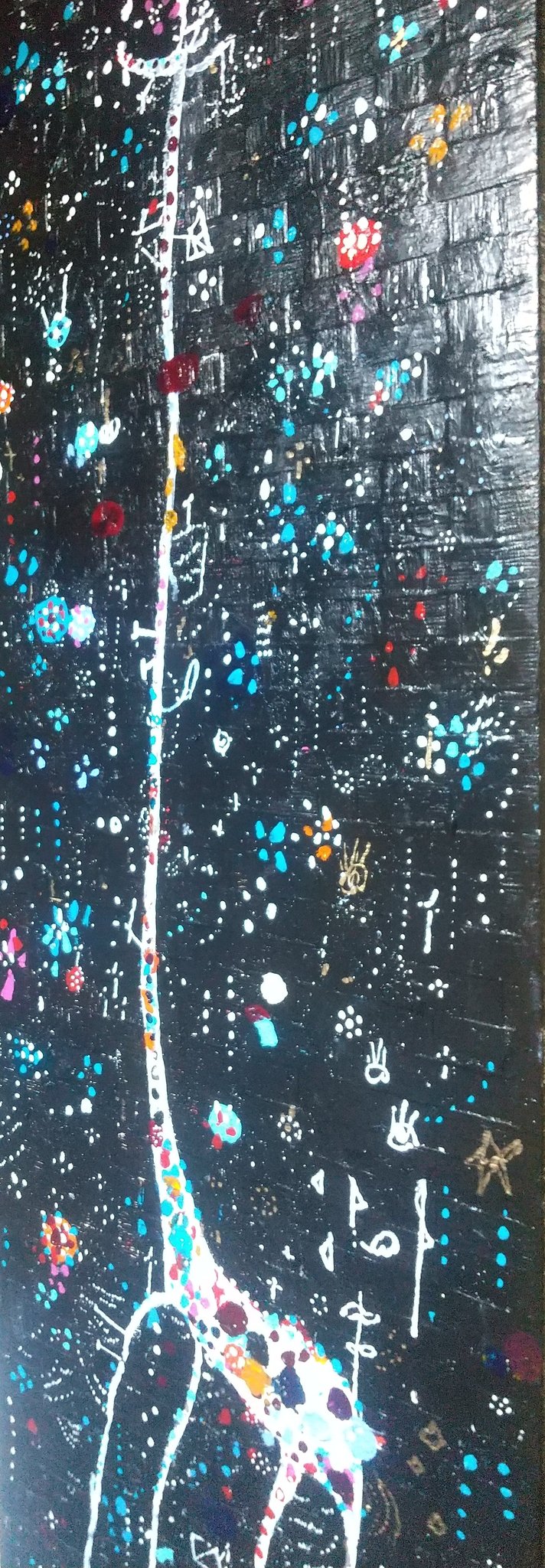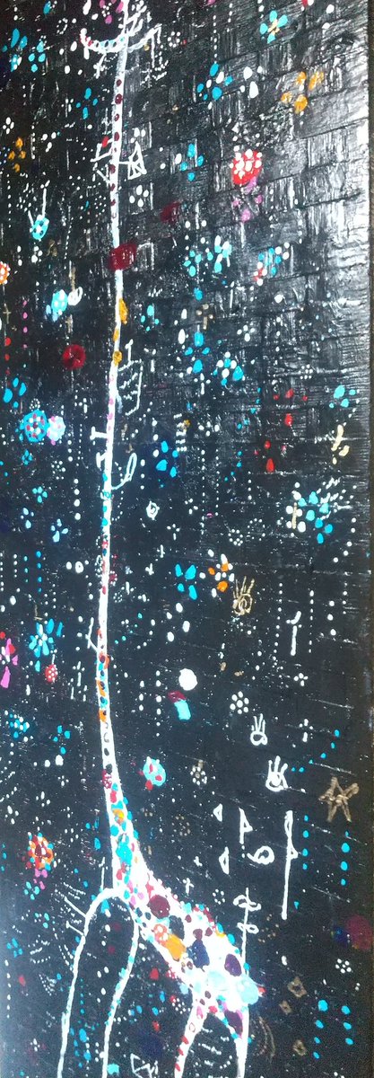 久方ぶりのSSMサイズがcompletionいたしましたよ😃寝かせて時間空けて描いた作品でして、アトリエの端から取り出して息吹を吹き込んでゆきました🦒 #giraffe #きりん #exhibition #casie #イラスト #illustrate #art #sky #store #design #interior #best #character #美術館 #aborigine #gallery