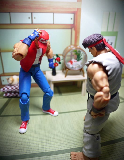 #おもちゃ撮影会 11/13テーマ『くつ』 リュウ「ここは日本だ!家にあがるときは靴を脱げ!!」 テリー「OH ! SORRY !!!」 #StreetFighter #餓狼伝説 #stormcollectibles