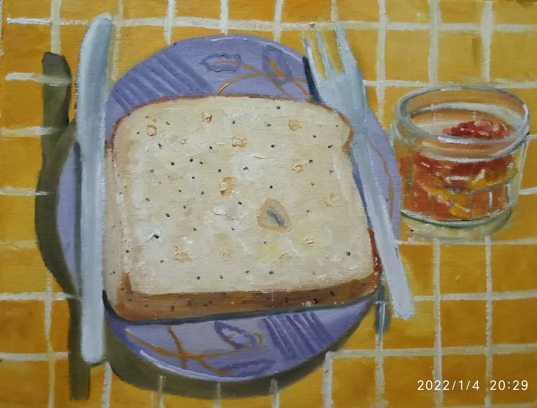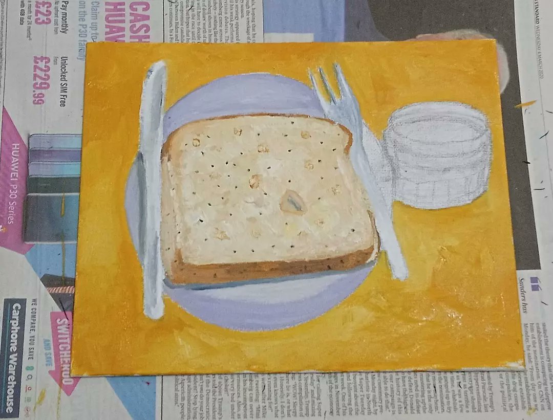 'Breakfast is ready!' - Day 4 of #stradaeasel Swipe to see progressive shots and DM to make this yours today! #artistontwittter #art #artist #artvsartist #artforsale #breakfast #dailypainting #commissionsopen #marmalade #bread #artseller #artgallery #colour #stilllife #artlover