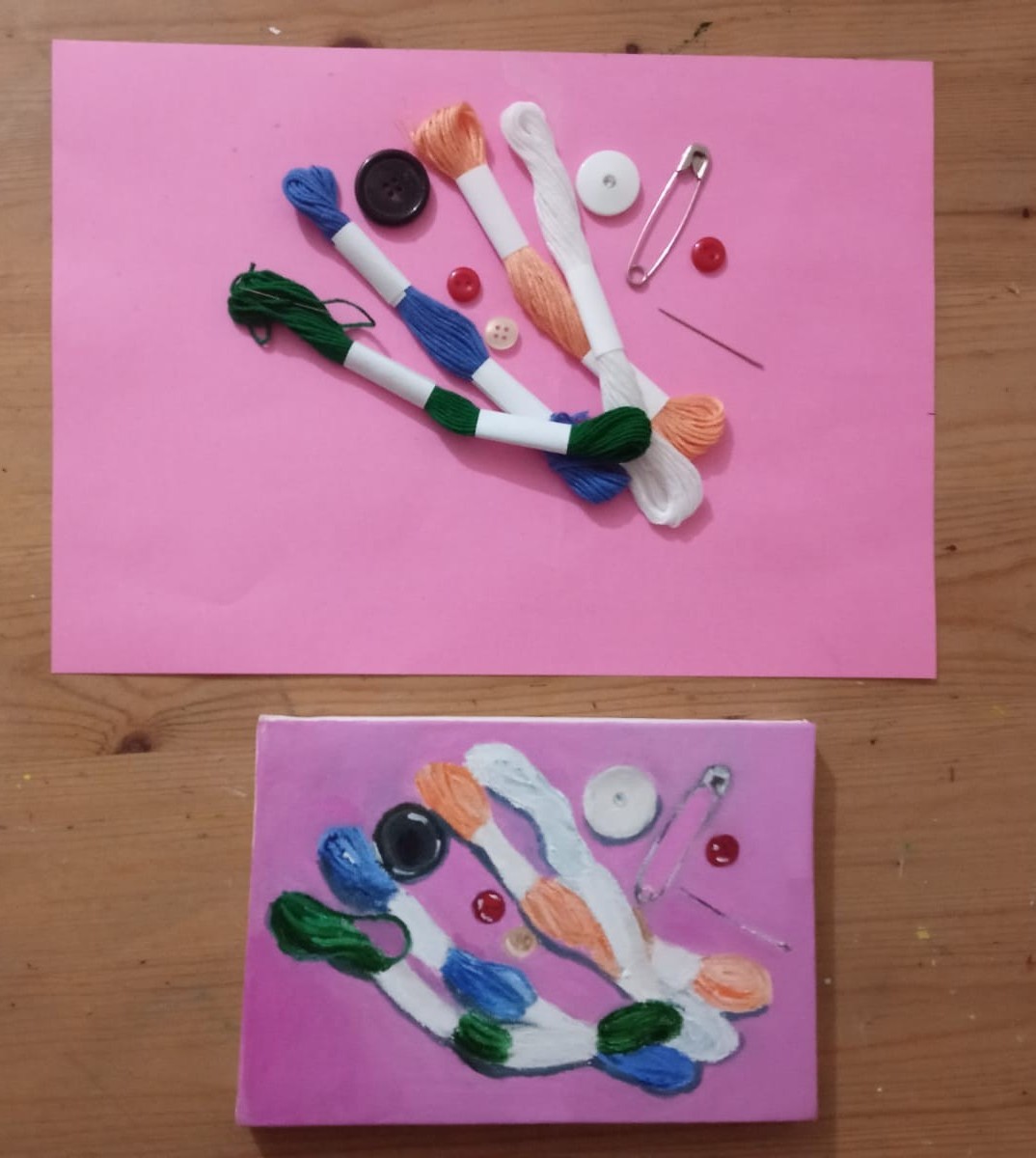 'A Stitch In Time' - Day 8 of #stradaeasel. DM to buy today! #artistontwittter #art #artist #artvsartist #artforsale #dailypainting #commissionsopen #artseller #artgallery #stilllife #artlover #interiordesign #embroidery #sewing #haberdashery #handmade #pink #weekendart #kentart