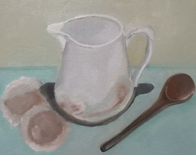 'Tea Time' - Day 9 of #stradaeasel. DM to purchase now #artistontwitter #art #artist #artvsartist #artforsale #dailypainting #commissionsopen #artseller #artgallery #stilllife #artlover #artcollector #interiordesign #artistinlondon #teapot #tea #ceramic #homeware #kitchenart