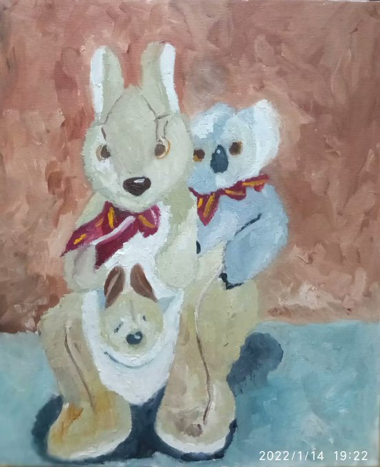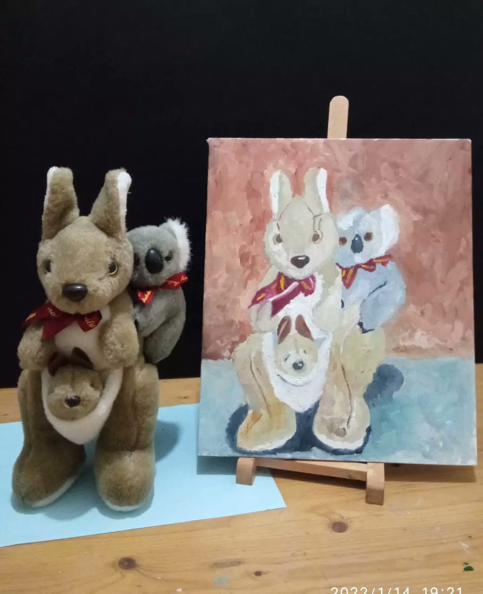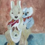 'Fond of You' - Day 14 of #stradaeasel. DM to purchase now! #artistontwittter #art #artist #artvsartist #artforsale #commissionsopen #artcommissions #artseller #artgallery #artlover #interiordesign #kangaroo #koala #Australia #australiatourism #animalpainting #kids #impressionism