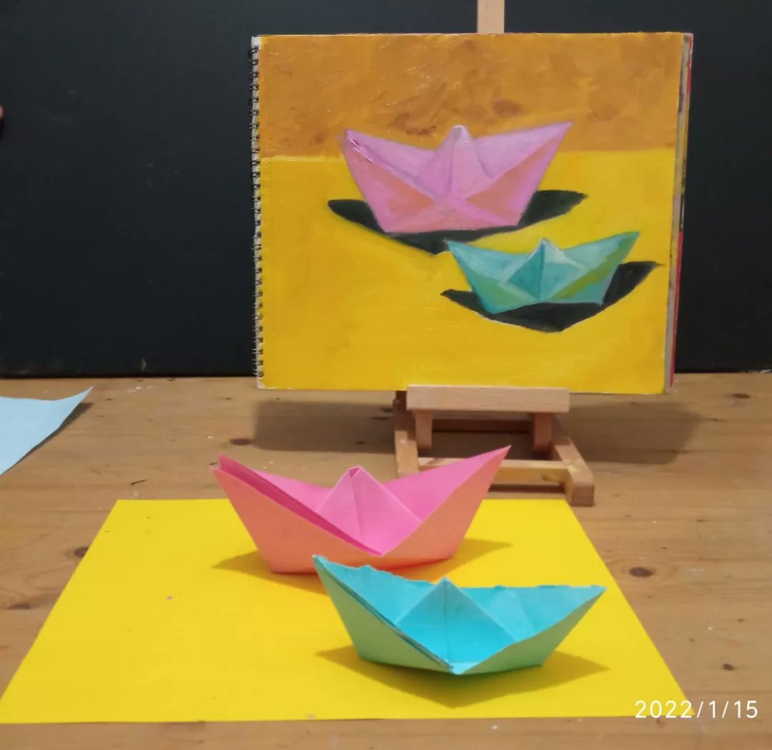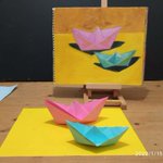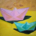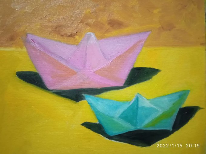 'On A Voyage' - Day 15 of #stradaeasel. DM to purchase! #artistsontwitter #art #artist #artvsartist #artforsale #commissionsopen #artseller #artgallery #artlover #artcollector #affordableart #interiordesign #homemade #paperboats #boat #boatpainting #voyage #Origami #japaneseart