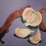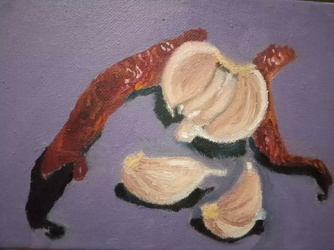 'Chilli-ing Out' - Day 21 of #stradaeasel. DM to buy now! #ArtistOnTwitter #art #artists #artvsartist #artforsale #ArtCommission #artgallery #stilllife #artlover #artcollector #interiordesign #artdeco #kitchenart #Garlic #redchillies #contemporaryart #realism #artforrestaurants