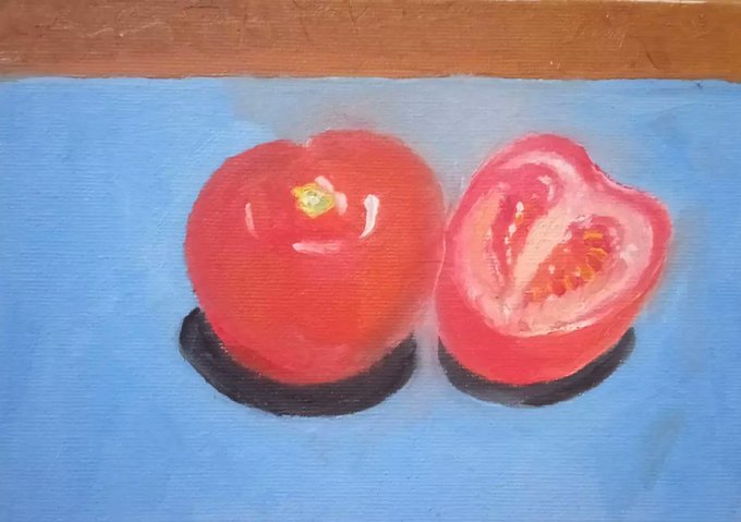 'Half Hearted' - Day 28 of #stradaeasel. DM to buy! #artwork #art #artist #ArtistOnTwitter #artvsartist #artforsale #commissionsopen #artgallery #ArtLovers #artcollector #interiordesign #Tomato #tomatopainting #heart #heartbeat #Vegan #farm #vegetarian #artshare #kitchen #artsy
