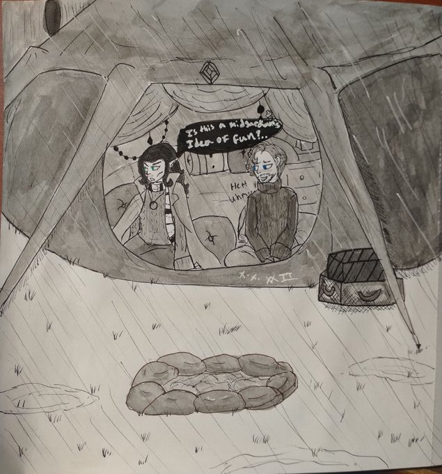 Caught in the rain an Loki is less than pleased. Loki: Is this a midgardian's idea of fun? Stephen: heh uhm.. Loki: We could use or magic to get rid of the rain but noOOooo Stephen:... #Inktober #inktober2022 #inktober2022crabby #loki #DrStrange #strangefrost #inktober