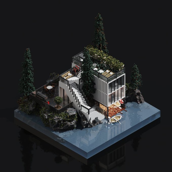 House on a rocky shore artstation.com/artwork/zDeD5w #MagicaVoxel #Voxelart #voxel #strategy #gameart