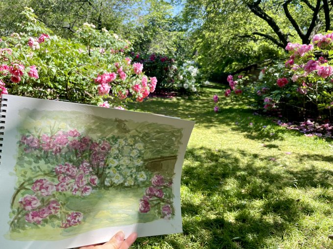 Plain Air Water Color at Japanese Tree Peony Collection. 友達とブルックリン植物園の牡丹の写生に行きました。昨日の大雨でかなり散ってました。#つらら庵お散歩スケッチ #brooklynbotanicgarden #winsorandnewton #水彩画 #strathmorepaper #japanesetreepeony #牡丹