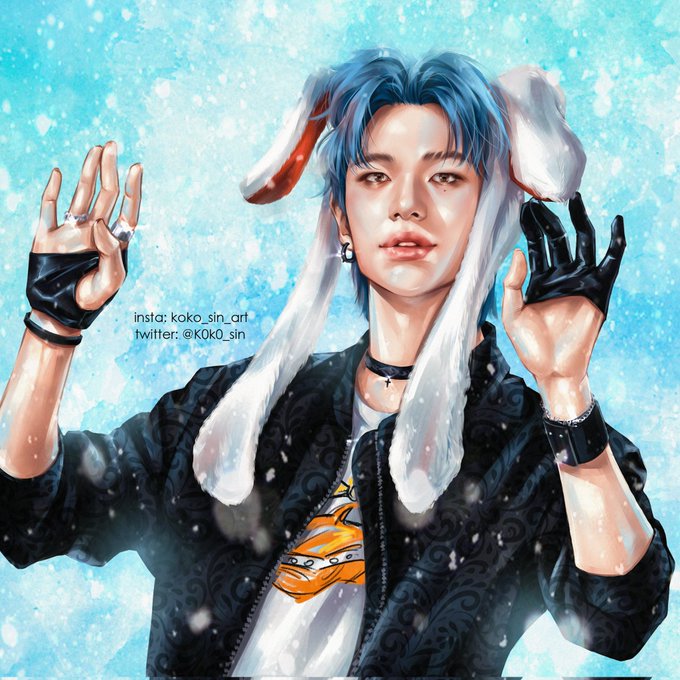 Happy New Year 🐰❄️ #hyunjin #straykids #straykidsfanart #straykidsart #스트레이키즈 #현진 #lovestay @Stray_Kids