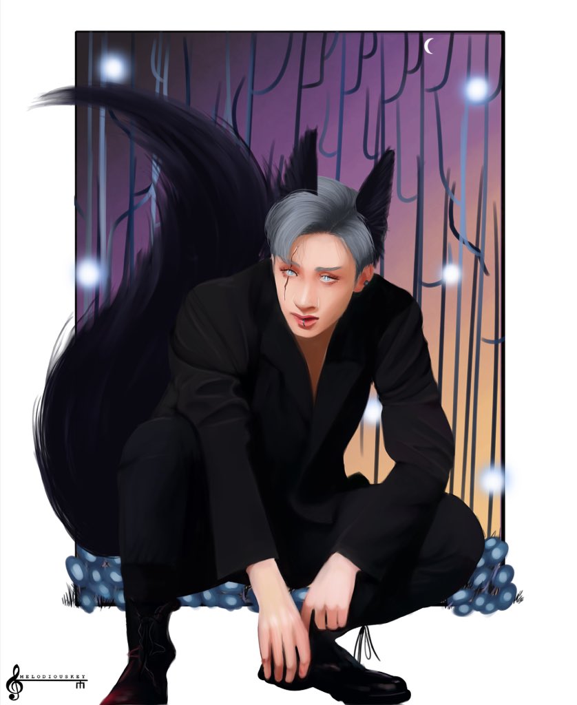 Bow Down. [Inktober: 4/8] [Prompt:Werewolf-Forest/Moon] #straykids #bangchan #inktober #straytober #fanart #fantasy #skzoo #SKZOOfanart #스트레이키즈 #방찬