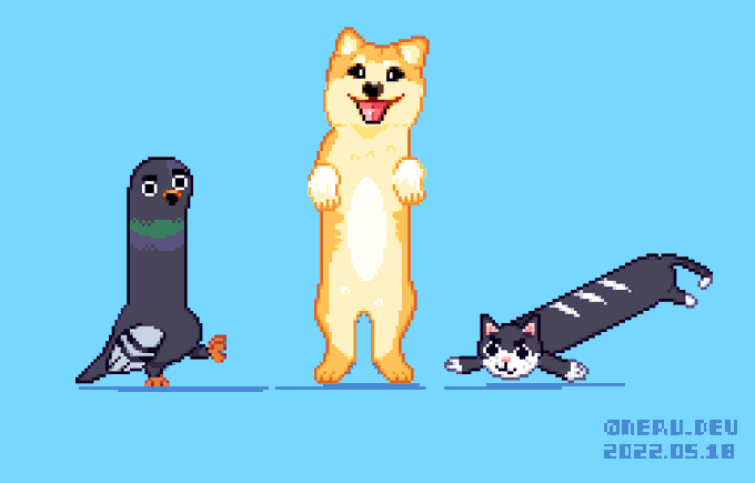 Three animals #stretched for today's @Pixel_Dailies #Pixel_Dailies #pixelart #Pixel #aseprite #ドット絵 #stretched #cuteart