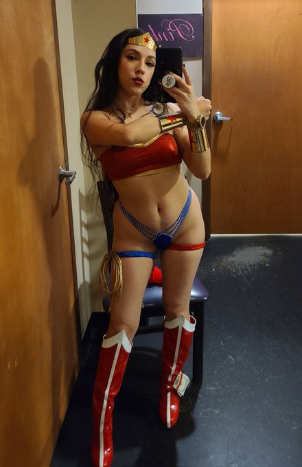 Hope you are having a WONDERful day!!! I know I am. It is hard not to when I am over here fantasizing about being tied up by my own Lasso of Truth. Would you like to tie me up? 🥵❤💫💙 #WonderWoman #stripper #Halloween #cosplay
