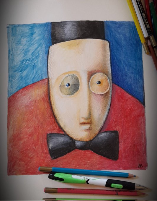 Portrait of a guy who has been pressed with stupidity for years. Portrait d'un mec pressé de bêtise depuis des années. #portrait #drawing #art #stupidity #coloured #arte #artgallery #ArtistOnTwitter #crayons #sketch