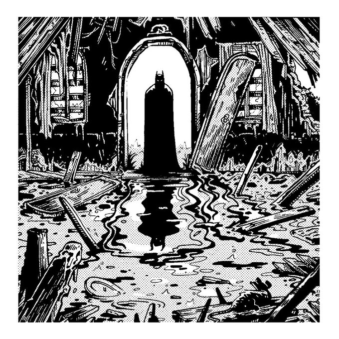 #BATOBER chapter 4 : #Submerged Trying to follow master @chrissamnee ‘s list this year ! (Sorry for the repost, I forgot to add it in the thread at first) #batman #inktober #inktober2022 #darkknight #arkham #arkhamasylum #ruins #gotham #dc #dccomics #ink #blackandwhite #rain