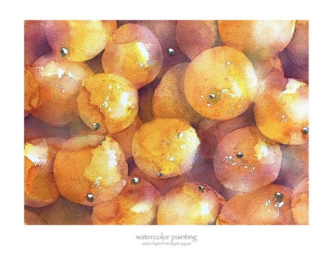 オレンジ。たくさんバージョン。#Watercolor #スケッチ #水彩画 #透明水彩 #京都水彩画塾 #水彩画ワークショップ #水彩画教室 #京都の絵画教室 #5月のWSでやります #suisaigajuku.com