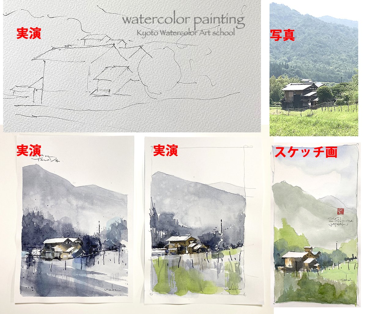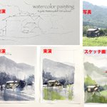 授業から。風景画の構成手順を実演しながら絵をかきます。塾生さんには汗をかいてもらいます^ ^#Watercolor #スケッチ #水彩画 #透明水彩 #京都水彩画塾 #水彩画ワークショップ #水彩画教室 #京都の絵画教室 #suisaigajuku.com