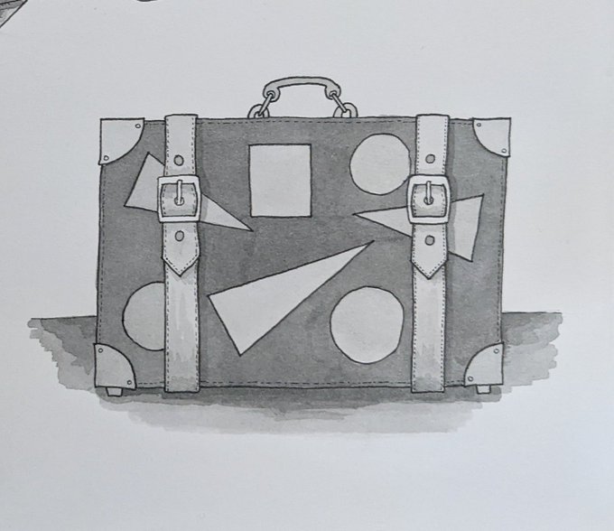 If you're going on a trip, you'll be needing one of these!!! #inktober2022 day 7 "trip" a vintage suitcase with stickers in micron (02 and 005) painted with calligraphy ink ✒️🖋️ #Inktober #artchallenge #suitcase #Travel #trip #roadtrip