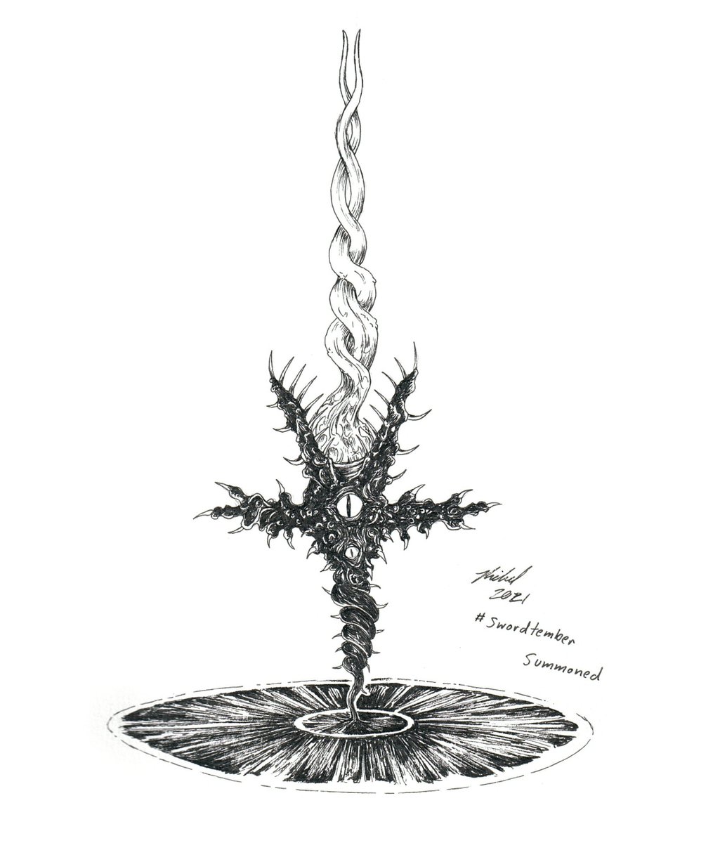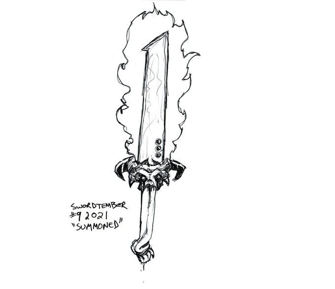 In the spirit of Inktober, there is now Swordtember where a sword has to be involved in the drawing somehow. I'll be following the official Swordtember prompt list. This is #9 and the prompt was 'summoned.' #swordtember #swordtember2021 #sword #summoned