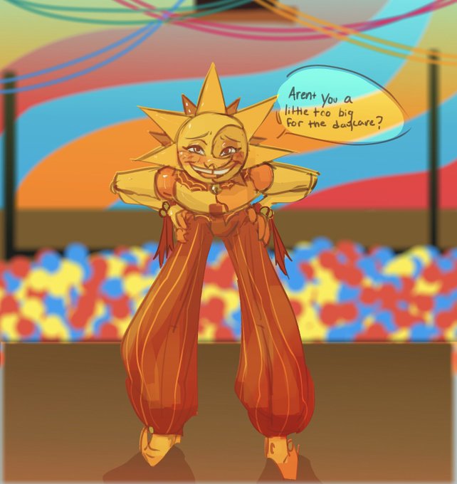 Five hours later it's done, I got lazy with the background but Sun. Just Sun. #sundrop #sunnydrop #fnafsecuritybreachfanart #fnafsundrop #fnafsbfanart