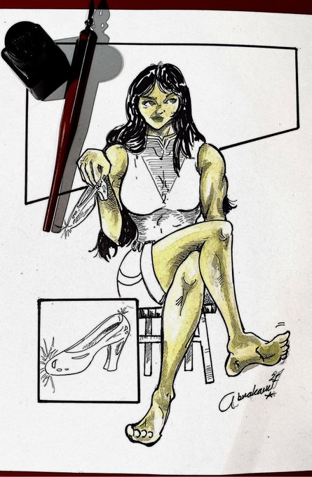 Arrancamos con el #inktober #inktober2021 #inktobermexico #Inktoberday1 y ahora decidí que la temática sería poner la palabra e integrarla a un #superhéroe #personajedepelicula, palabra de hoy es #Crystal #Crsital el personaje es #shehulk y la #zapatilladecristal . Bienvenidos !!