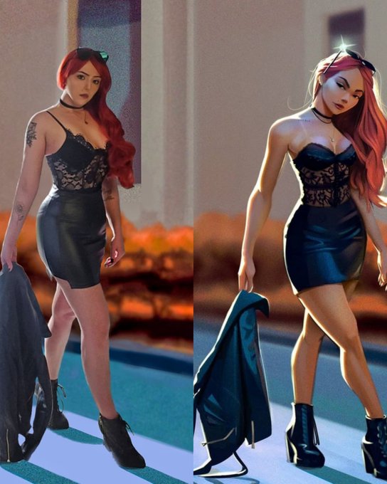 My cosplay of brenopontesart's (on IG) full-scale leather-clad beauty 🖤 #supportartist #supportart #cosplay #artcosplay #cosplayart #digitalartrecreation #digitalart #digitalartcosplay #digitalartist #digitalartists #supportdigitalartists #leather #leatherskirt #leatherjacket